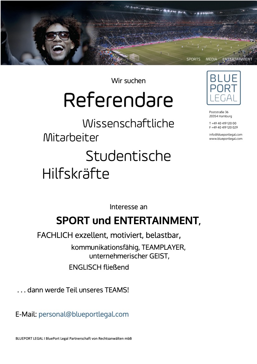 BluePort Legal sucht Referendare, WiMis, studentische Hilfskräfte mit Interesse an Sport und Entertainmentvon refvredaktionin Stellenanzeigenan Veröffentlicht am 12. Oktober 2025
