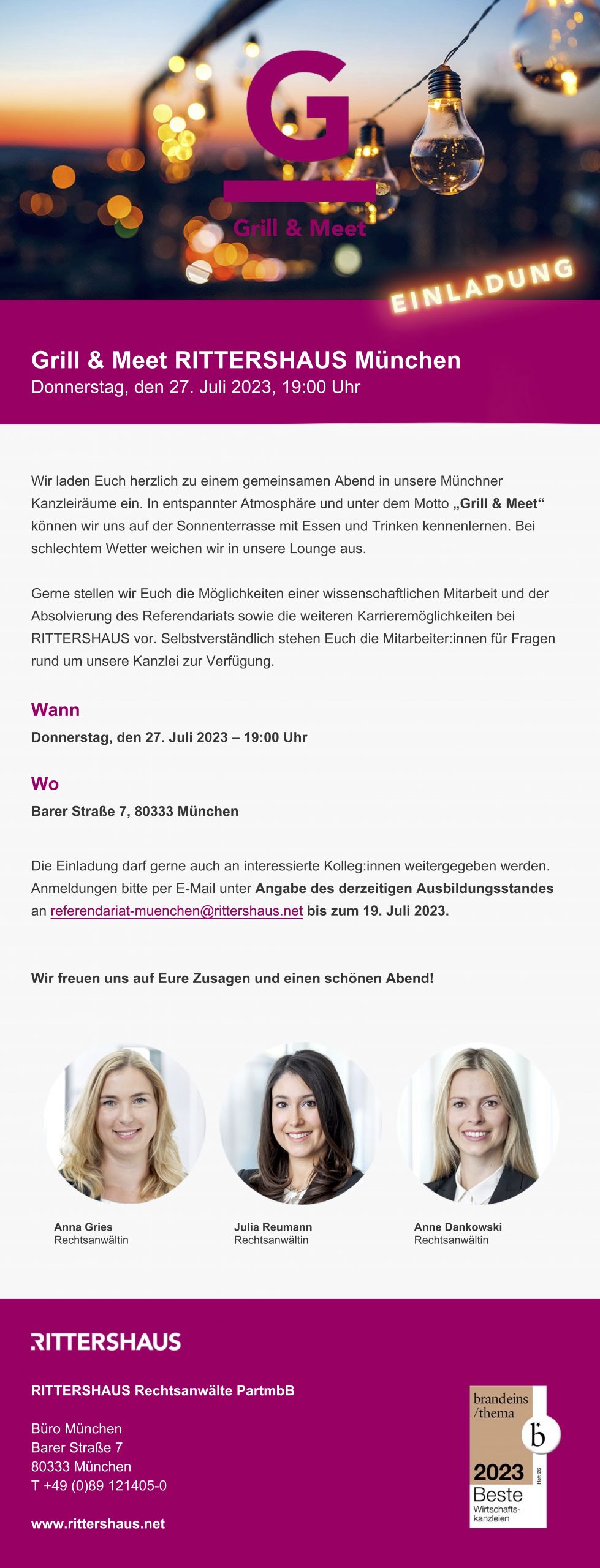 „Grill & Meet“ am 24.08.2022 bei RITTERSHAUS in München!von refvredaktionin Aktuelles & Veranstaltungenan Veröffentlicht am 19. Juli 2023