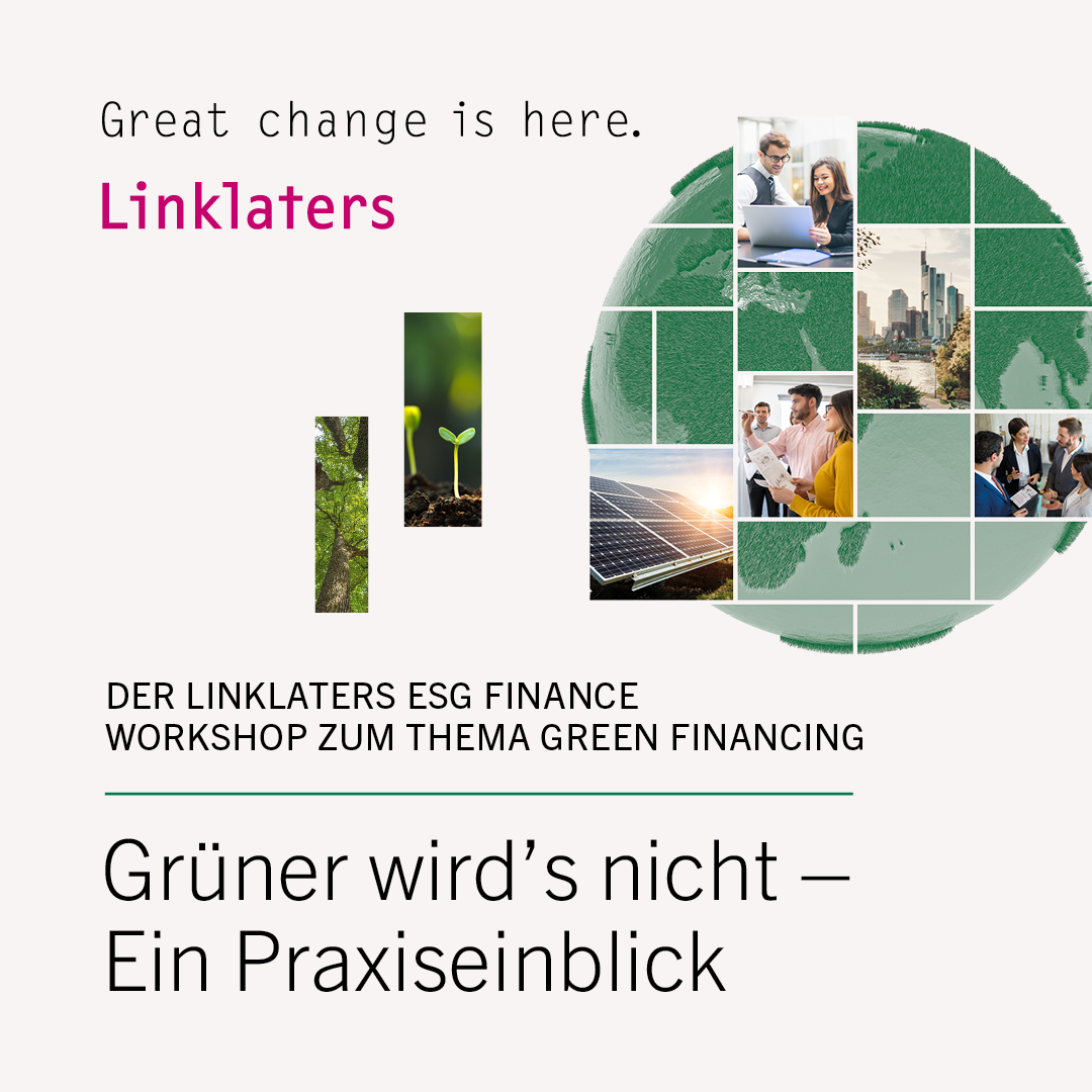Im neuen ESG in Finance Workshop stellt sich das Linklaters Finance Teams in seinen unterschiedlichen Facetten und Expertisen im Rahmen spannender Case Studies vor. Tauchen Sie ein in die Welt des Green Financings und nehmen Sie verschiedene Perspektiven ein. Anhand von Case Studies rund um das Thema Green Financing übernehmen Sie gemeinsam mit den Linklaters Finance Fachbereichen die Aufgaben, die bei einem großen Mandat anfallen und erfahren, wie die Teams als Ganzes zusammenarbeiten. Ganz nebenbei erfahren Sie auch, was ESG (Environmental, Social und Governance) im Mandatsalltag bedeutet und wie vielseitig in diesem spannenden Thema in den Fachbereichen übergreifend beraten wird.