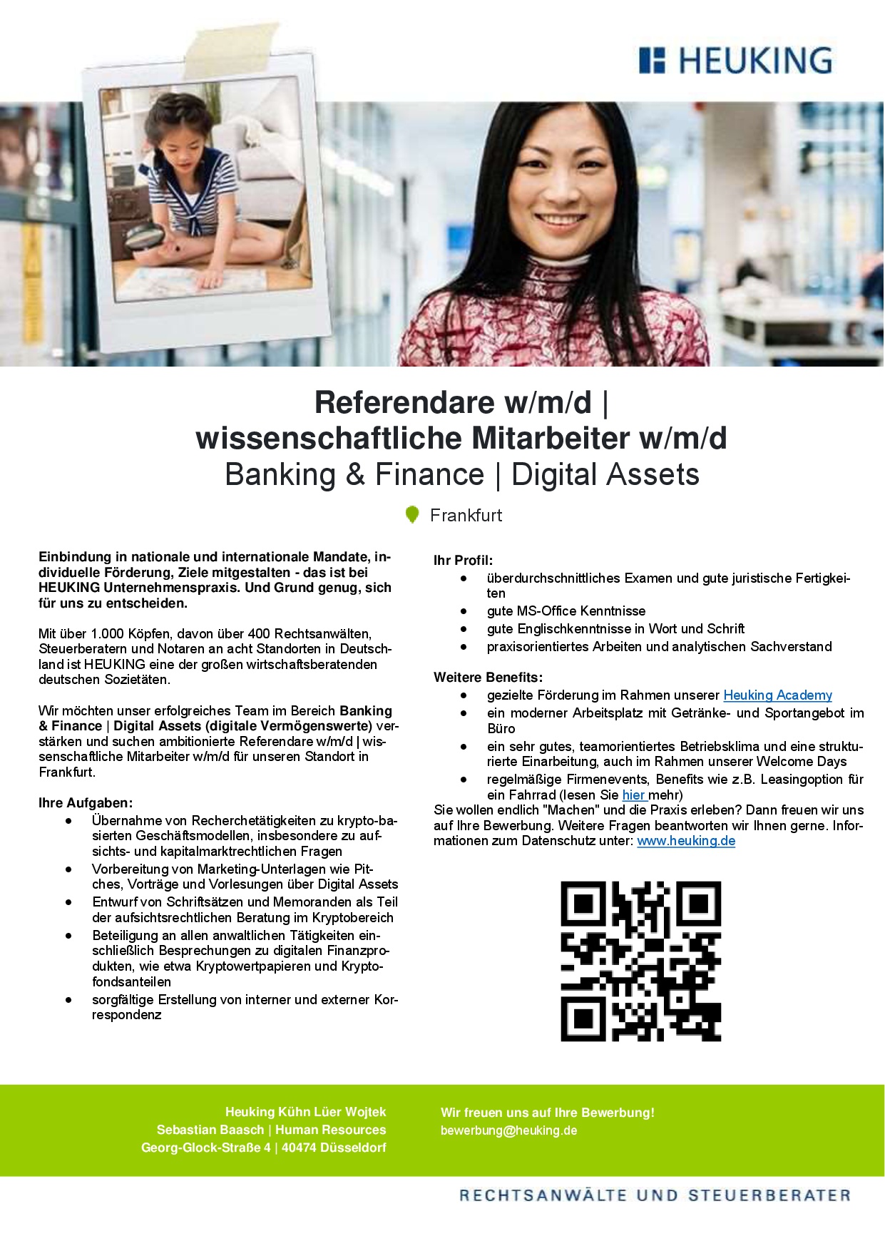 HEUKING sucht Referendar:innen/Wissenschaftliche Mitarbeiter:innen/Associates (m/w/d) im Bereich Digital Assets bzw. Banking & Financevon refvredaktionin Stellenanzeigenan Veröffentlicht am 12. August 202412. August 2024