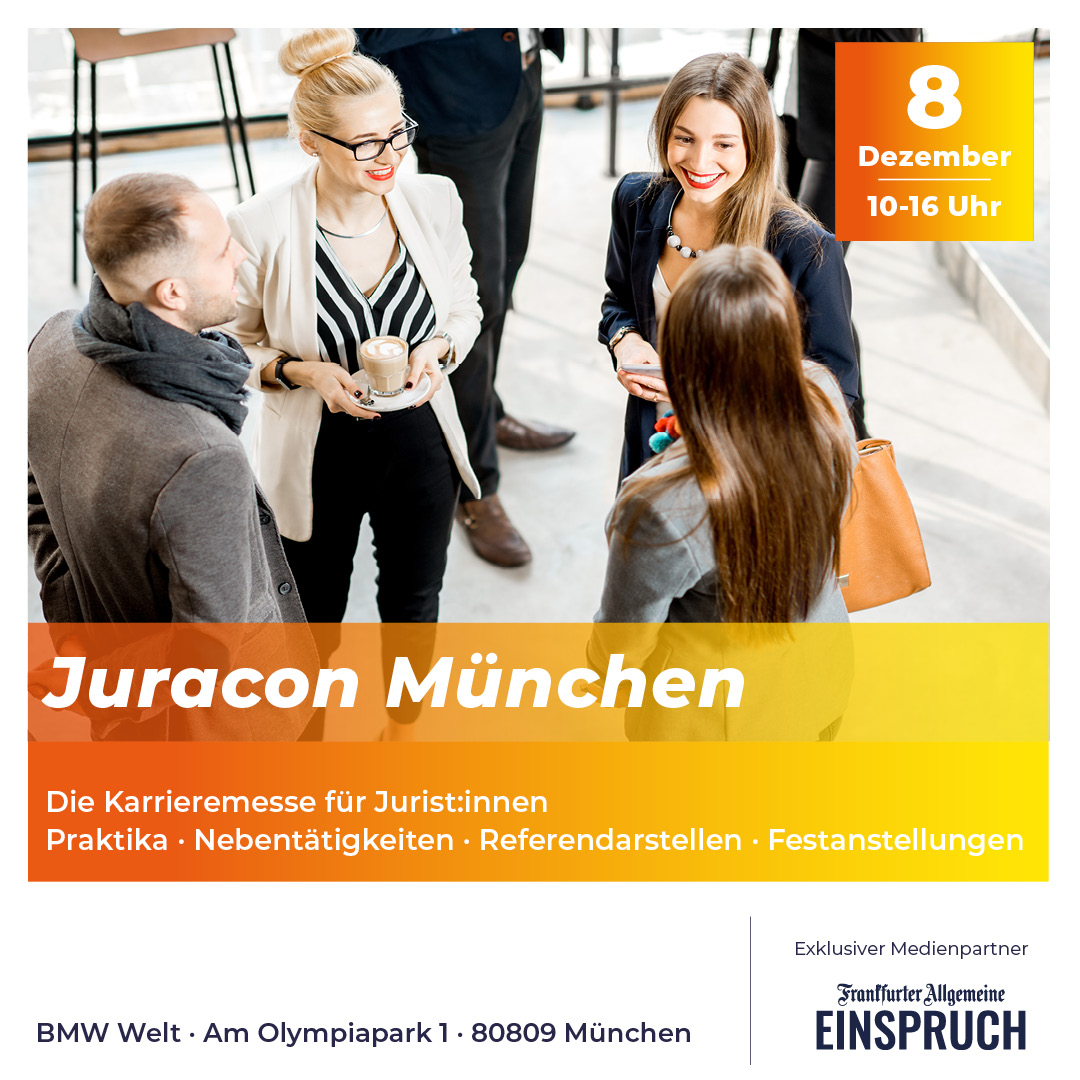 Juracon München am 08. Dezember 2022von refvredaktionin Aktuelles & Veranstaltungenan Veröffentlicht am 28. November 202228. November 2022 Am 08. Dezember 2022 findet in München die Juracon von myjobfair statt. Es wird spannende Vorträge von Kliemt, Daimler, C.H.Beck und vielen mehr geben! Anmeldung über diesen Link: https://app.talentspace.io/landing/21230011142044424203