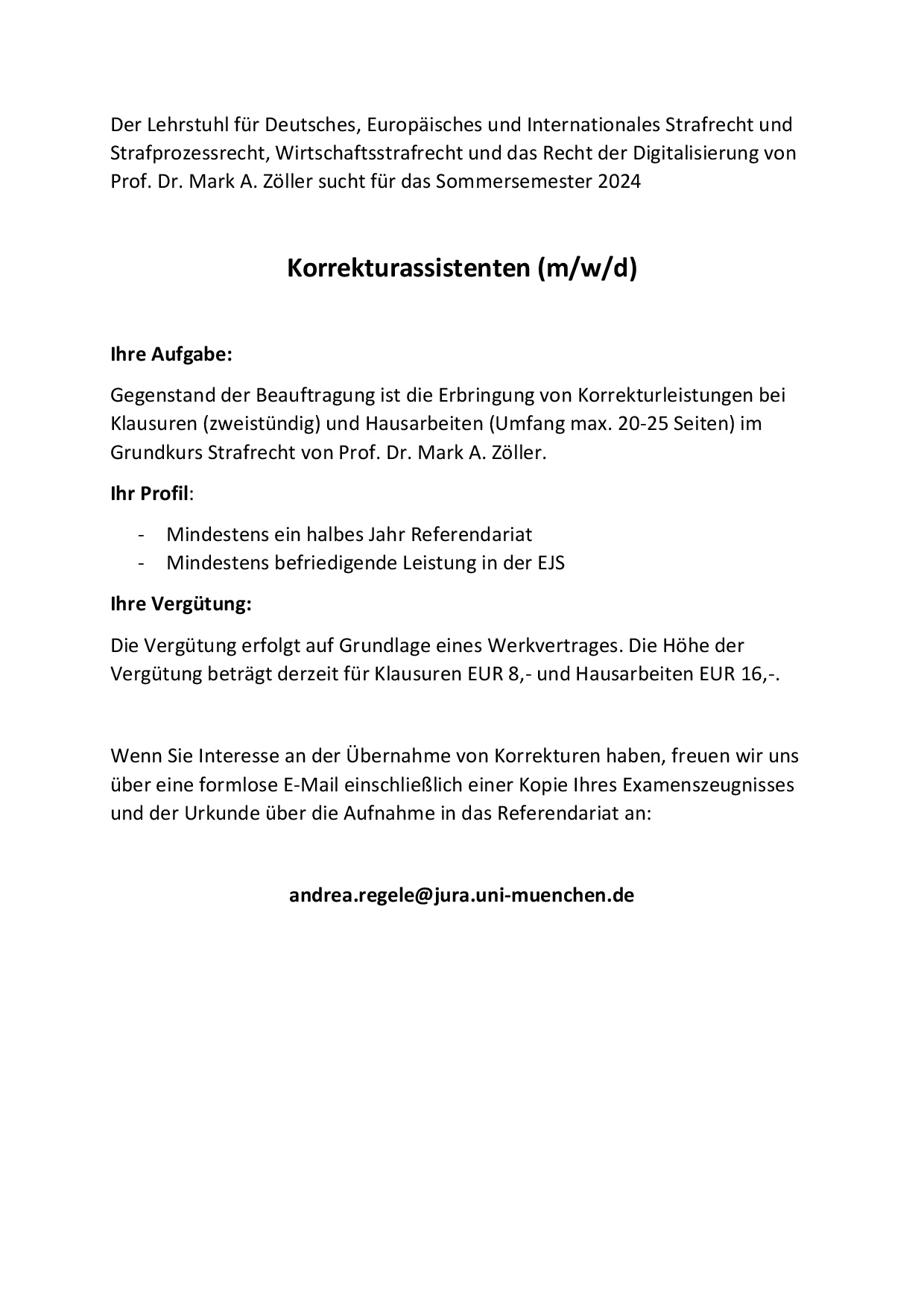 Werde Korrekturassistent/-in (m/w/d) am Lehrstuhl für Deutsches, Europäisches und Internationales Strafrecht und Strafprozessrecht, Wirtschaftsstrafrecht und das Recht der Digitalisierung von Prof. Dr. Mark A. Zöllervon refvredaktionin Stellenanzeigenan Veröffentlicht am 22. März 2024