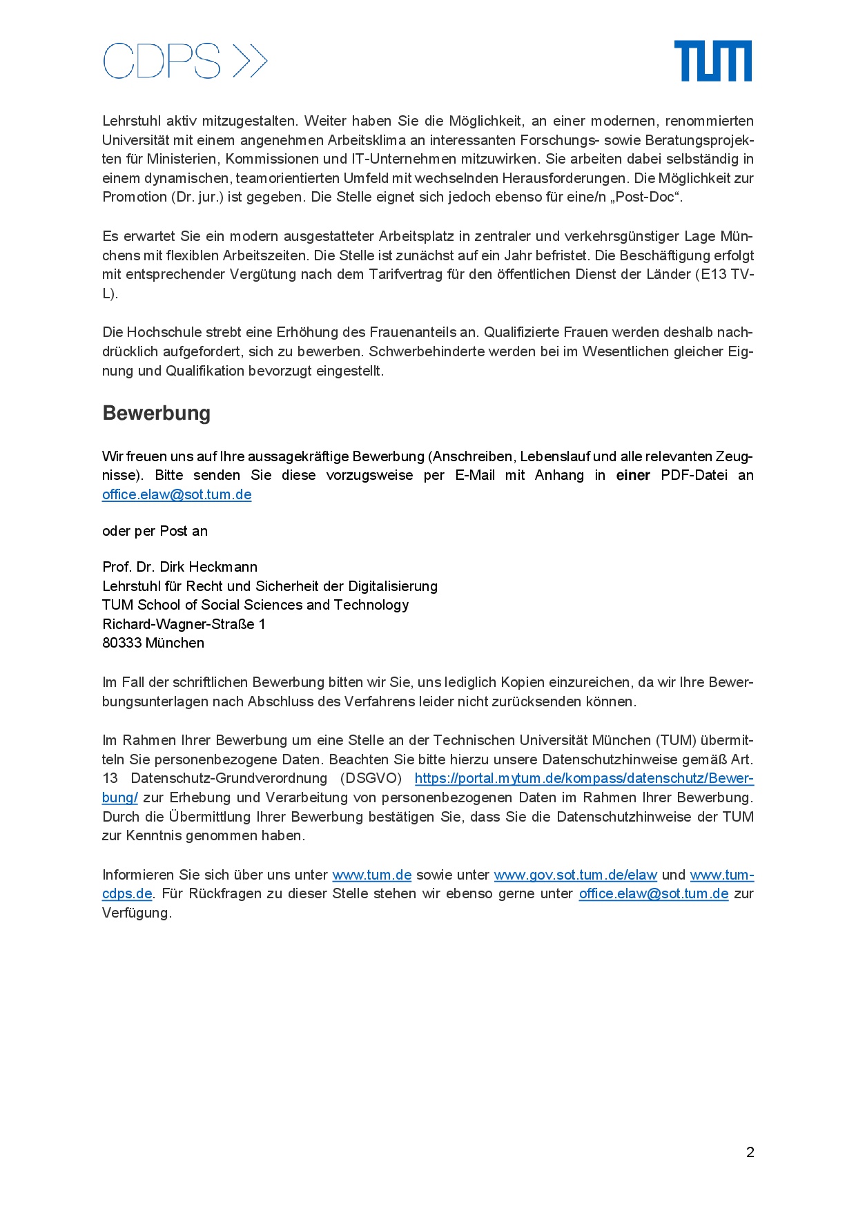 Wissenschaftliche/r Mitarbeiter/in (m/w/d) am Lehrstuhl für Recht und Sicherheit der Digitalisierung gesucht