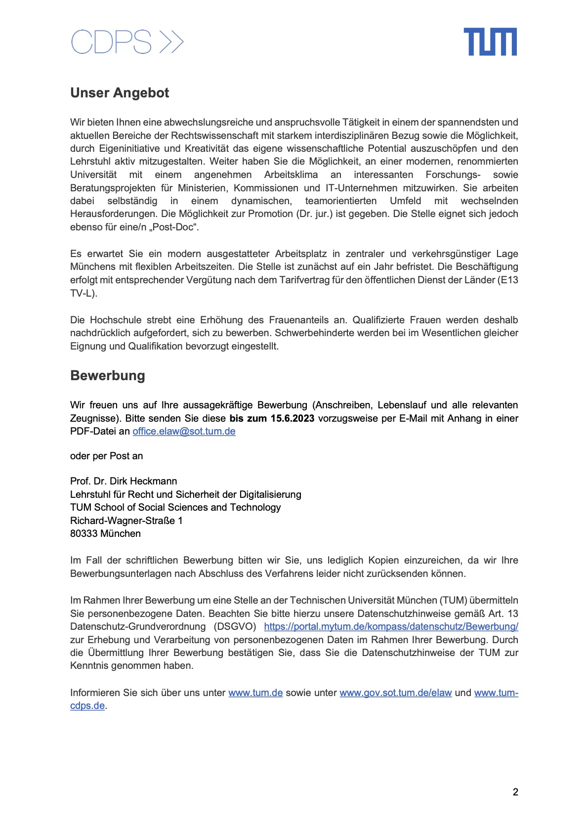 Wissenschaftliche*r Mitarbeiter*in (/m/w/d) am Lehrstuhl für Recht und Sicherheit der Digitalisierung (TUM) gesucht