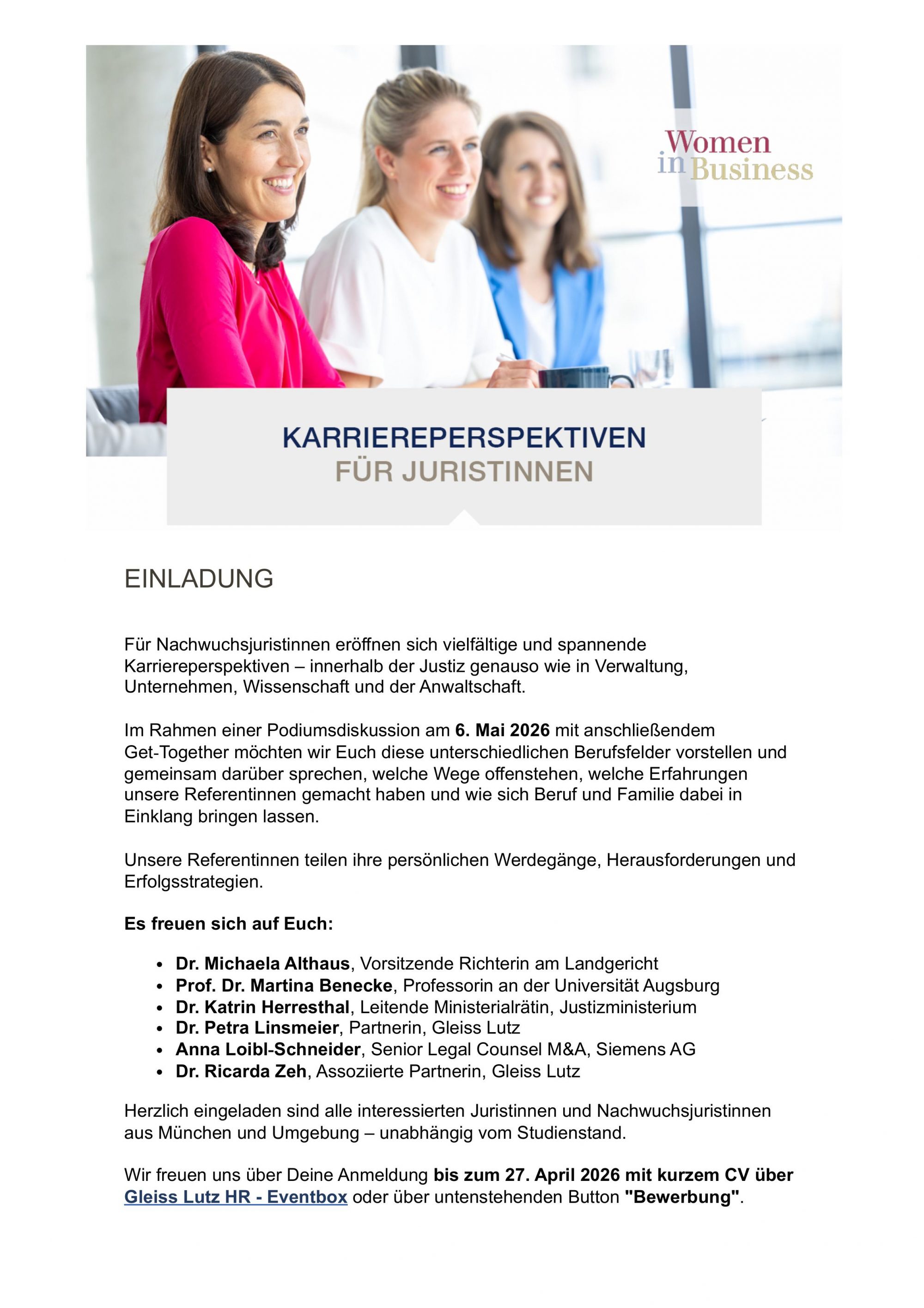 Women in Businessvon refvredaktionin Aktuelles & Veranstaltungenan Veröffentlicht am 10. April 2026 Anmeldungen sind ab sofort unter dem folgenden Link möglich: Women in Business FacebookShare on XLinkedInWhatsAppEmailCopy Link